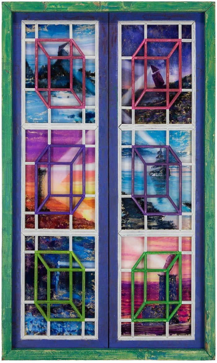 六座燈塔 Six Lighthouses 古董木窗、油彩、有機玻璃 antique wooden window, oil paint, plexiglass 156.5 x 93 x 9.5cm 2021.11