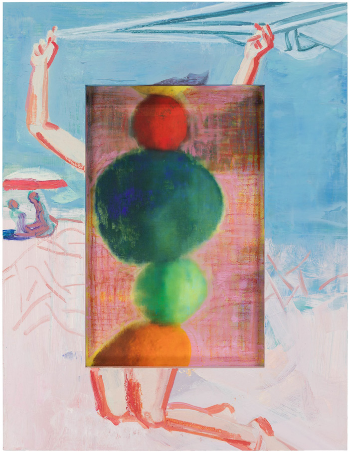 李青:因為前景這些人物的動作也帶有很世俗、很浮夸的感覺,略微帶有一些表演性。這些圖像很多也是來自于社交媒體上的自拍,廣告中人物的動作,在這種氛圍上也是一種很時髦、很消費的氛圍,或者說這些人在表達自己的時候通過身體和肢體語言、裝束,通過他們之間的行為在表達自己的時候,也是把自己當成了一種物化對象吧。