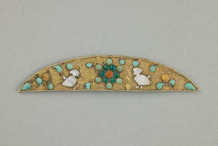 梳背,公元8世紀 金、寶石、琉璃、硨磲 夢蝶軒惠贈 香港故宮文化博物館藏
