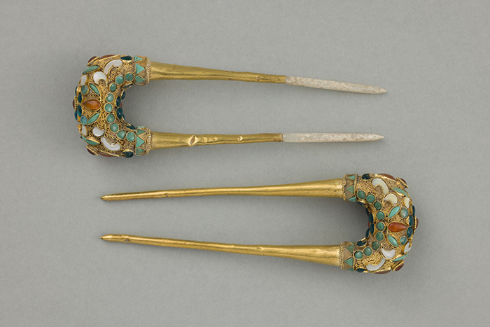 釵 唐,公元7世紀 金、寶石、琉璃、硨磲 夢蝶軒惠贈 香港故宮文化博物館藏