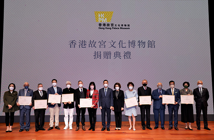 捐贈典禮在香港故宮文化博物館香港賽馬會演講廳舉行,由香港特別行政區政府文化體育及旅游局局長楊潤雄擔任主禮嘉賓,向各位捐贈人頒發感謝狀,表彰他們對博物館的貢獻和支持。其他主禮嘉賓包括香港故宮文化博物館董事局主席譚允芝、西九文化區管理局行政總裁馮程淑儀及香港故宮文化博物館館長吳志華博士。