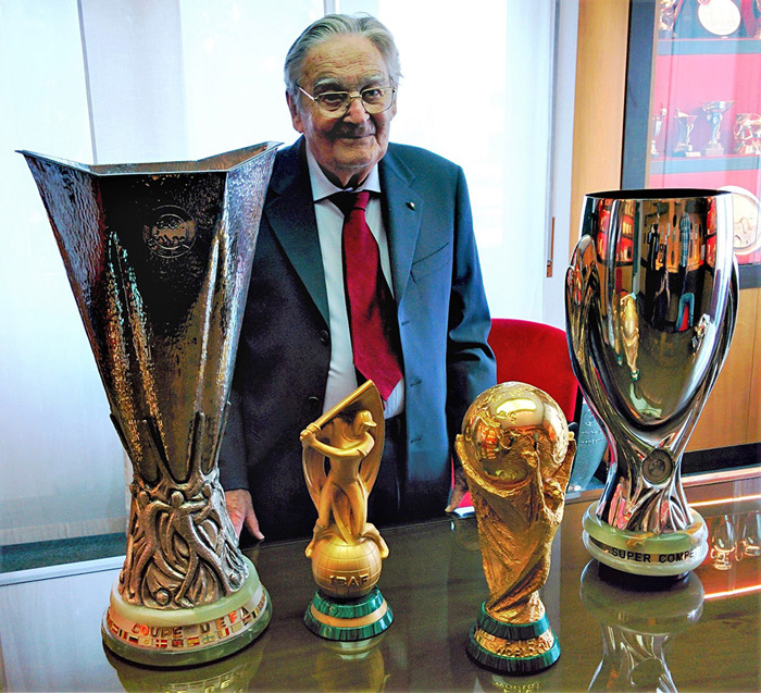 當年為了競標新獎杯的設計,西爾維奧?加扎尼加把自己關在斯福爾扎城堡附近的一個工作室里一整個星期,全心全力去設計。他本人是一名AC米蘭的球迷,作為一支輝煌球隊的球迷,他也深知一座獎杯所代表的重要意義。