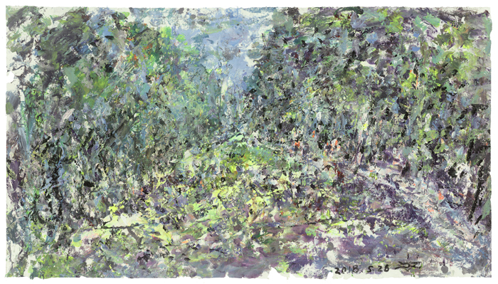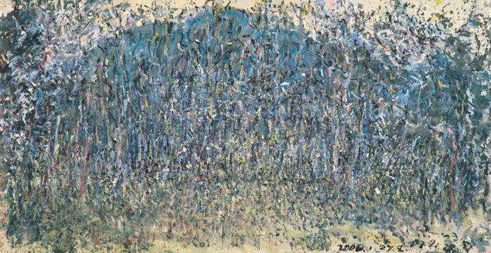 李玉雙長年行走、繪畫、坐忘于自然。山海、樹木、花草、風雨、四季,他從面對的每一片自然內部,擷取最為生動的信息媒介。這些信息層層疊加進李玉雙的畫作,以平面的濃度承載著永恒性與存在的自由。