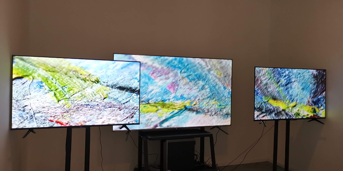 因此,李玉雙的作品具有超越單一時代局限的特性。繪畫藝術以信使般的角色,連接更早的過去、更具體的現在,以及更遠的未來。本展廳展出基于李玉雙繪畫體系創作的數字新媒體影像作品,使觀眾沉浸體驗李玉雙眼中的視覺世界。在夜晚,展廳轉換為面向外部,與自然景觀融合的光影界面。