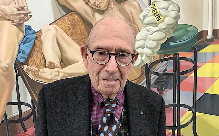 提起當代藝術家里擅長描繪人體的藝術家人們首先就會想起盧西安?弗洛伊德(Lucian Freud),但是還有一位描繪人體的藝術家——菲利普·帕爾斯坦(Philip Pearlstein)的人體繪畫也非常引人注目,他的作品因其現實主義而在藝術史上受到尊敬,他既高度傳統又非常激進,具有毫不妥協的客觀性和有條不紊的冷靜描繪,令觀眾著迷且富于挑戰性。近日,這位年近百歲的著名藝術家病逝于紐約。