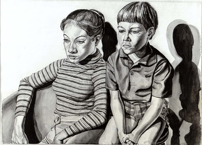 Michael Berger's Children 的肖像(彩色繪畫的黑白),1970 年(philippearlstein.com)