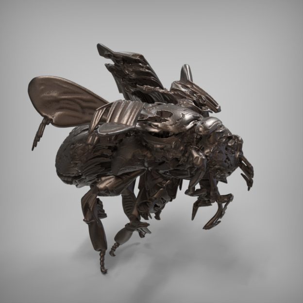 Ai-Da:蜜蜂雕塑。(圖片來源:Victor Frankowski)。這尊青銅雕塑是根據愛達的蜜蜂掃描圖制作的。