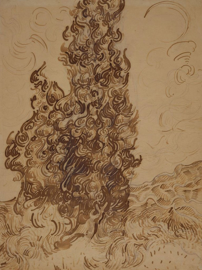 《柏樹》,1889年,紙本墨水、石墨畫,紐約布魯克林博物館藏