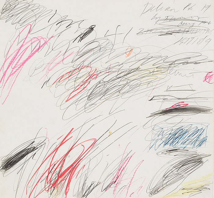 《提洛頌第19號》,賽·托姆布雷,1961年,紙本鉛筆畫