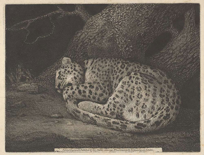 《一只睡著的豹子》,George Stubbs,1791年,蝕刻版畫