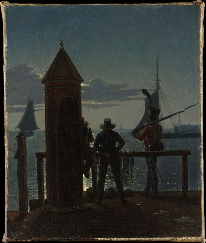《從哥本哈根城墻眺望月光下的景色》,馬丁努斯·羅彼,1839年,布面油畫