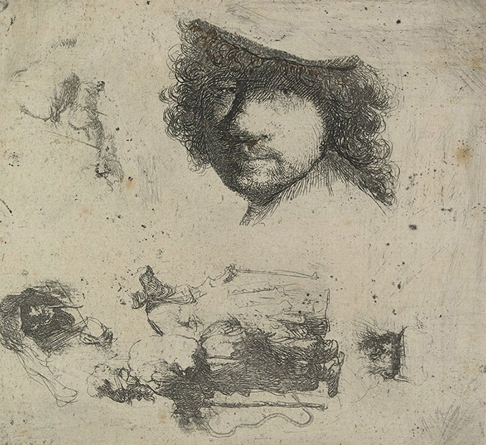 《倫勃朗頭像草稿》,倫勃朗,1632年,銅版畫,巴黎美術宮藏