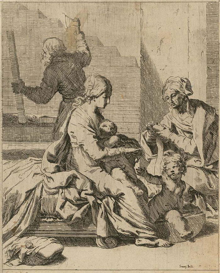 《圣家族、伊麗莎白與圣約翰,后方是圣約瑟夫》,Elisabetta Sirani,約1655-1665年,蝕刻版畫,柏林版畫素描博物館藏