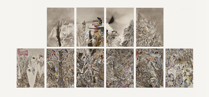 《九歌》(10聯),亞麻布上綜合材料,200×140cm×10,2014-2022