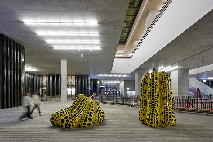 鄭道煉:M+有著非常巨大與宏偉的建筑,由瑞士建筑師事務所赫爾佐格和德·梅隆(Herzog&de Meuron)率領泰福華建筑設計咨詢(TFP Farrells)和奧雅納工程顧問(Arup Group Limited)共同設計而成。其中的建筑空間非常棒,但因為建筑空間的巨大、空間內部的角度等,并不是很容易在這些空間中去進行策展,對于策展人和藝術家來說在此舉辦展覽非常具有挑戰性。本次展覽共展出了草間彌生的203件藝術作品,可以在現場看到草間彌生的作品怎樣接受了建筑空間的挑戰。
