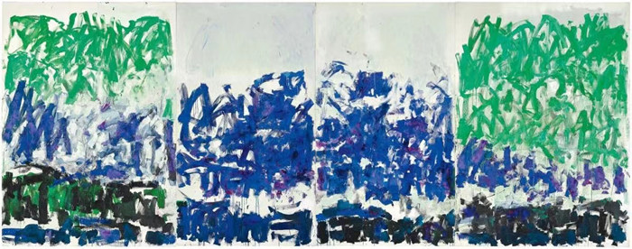 瓊·米切爾,《再見之門》,1980年,布面油畫,280x720厘米(第一幅:280x200厘米;第二幅280x160厘米;第三幅280x160厘米;第四幅:280x200厘米),1980年購藏蓬皮杜中心,巴黎,法國國家現代藝術博物館-工業設計中心,AM 1980-528 圖源:西岸美術館