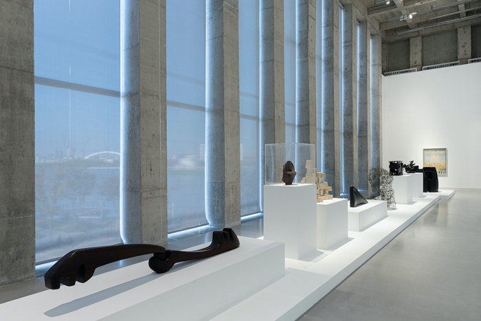 除了繪畫,雕塑與空間游戲這個展廳拓寬了抽象藝術的研究領域。出生于阿爾及利亞的藝術家西蒙娜·布瓦賽克的雕塑像堅實的墻一樣佇立在現場,揭示了原始藝術的影響。這位雕塑家從一開始就摒棄具象藝術,直面抽象,借用太陽、植物、火焰和其他圖騰或純詩意的形象來表達對原始藝術的熱愛,伴隨著對艾梅·塞澤爾 (Aimé Césaire)詩歌的閱讀,創作了她的第一個太陽,1956年到1970年代,一系列用于公共建筑的作品更加凸顯這位藝術家延續性的思考,能量聚焦,形式精簡,似骨架式的結構超越了我們生活世界的脆弱性、不穩定性和短暫性。