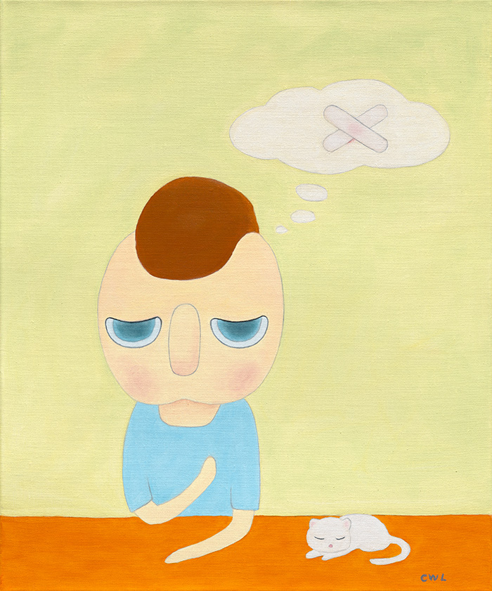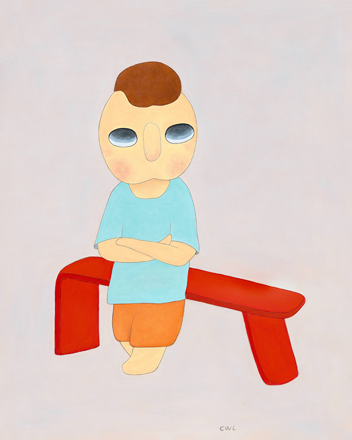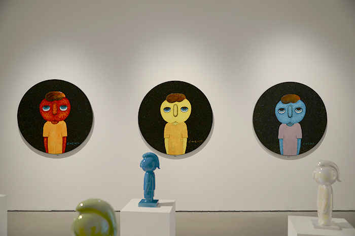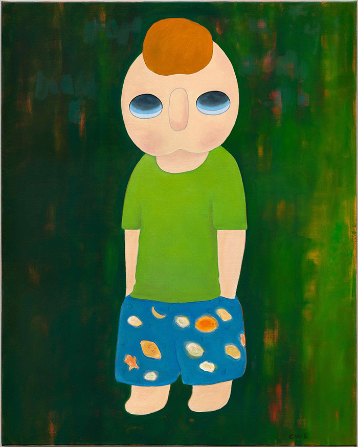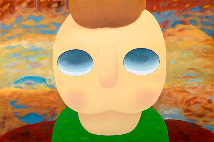 蔡萬霖是一位用直覺創作的藝術家,他將自己的經歷、閱讀、以及對生活周遭事物的觀察、體驗相疊加,在時間的重疊中建立生命本體的聯系。蔡萬霖所創作的藝術形象“yy”既映射出藝術家的自我觀照,也象征著在時代徘徊中思考著生活本質與方向的獨立個體——沒有嘴巴,卻用一種沉默的狀態去表達語言之外的意味;眼神空寂,卻又蘊藏著一種天真的平靜無畏,喚起觀者心底的共鳴與慰藉。
