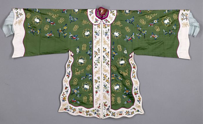 綠色緞繡桂花玉兔金皮球花紋八月花神衣 清光緒 故宮博物院藏