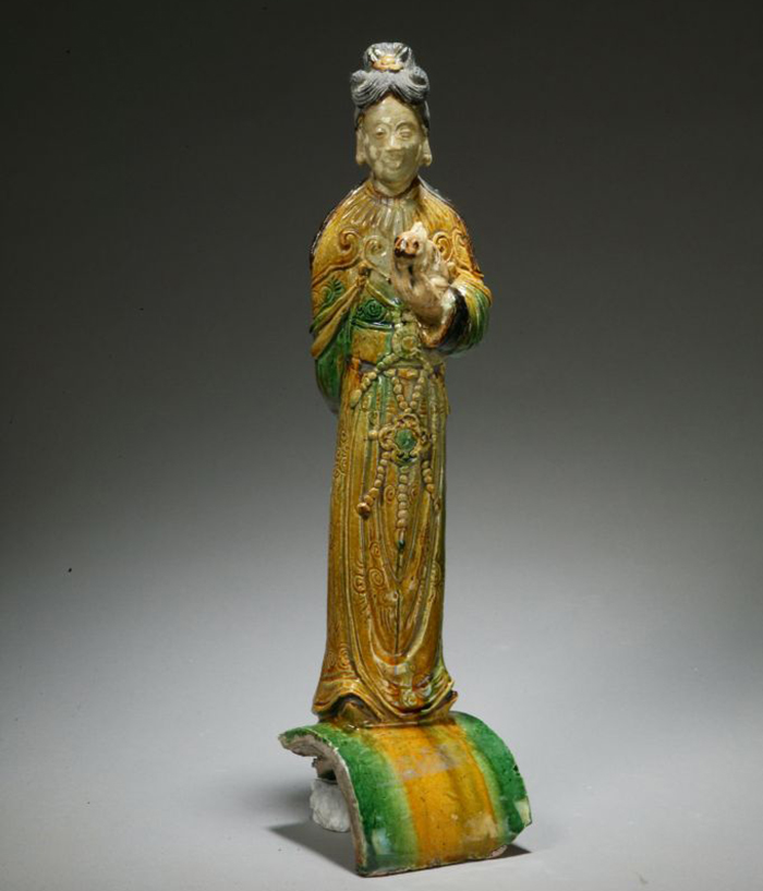 三彩琉璃手托兔女立像瓦 明 故宮博物院藏