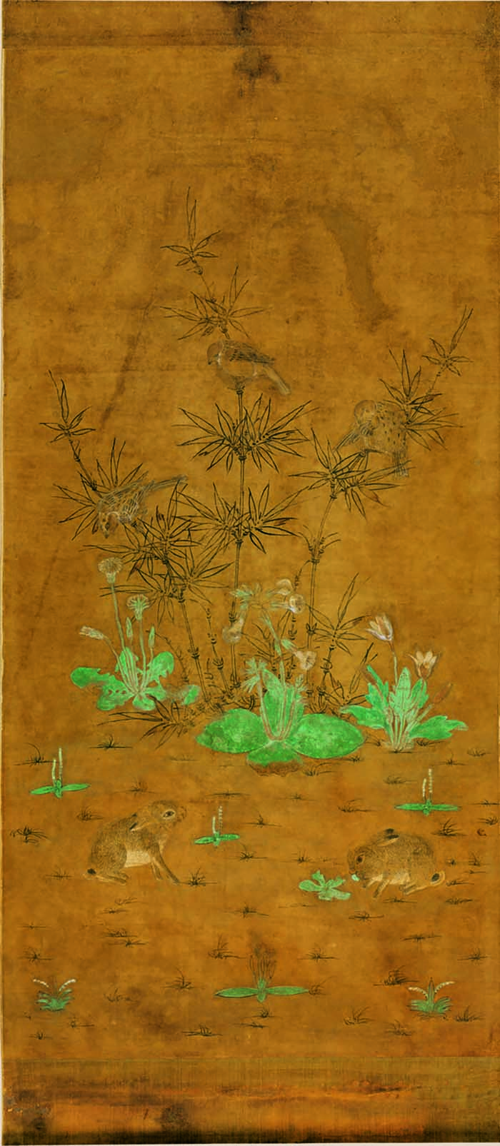 葉茂臺七號遼墓出土 竹雀雙兔圖 遼代 遼寧省博物館藏