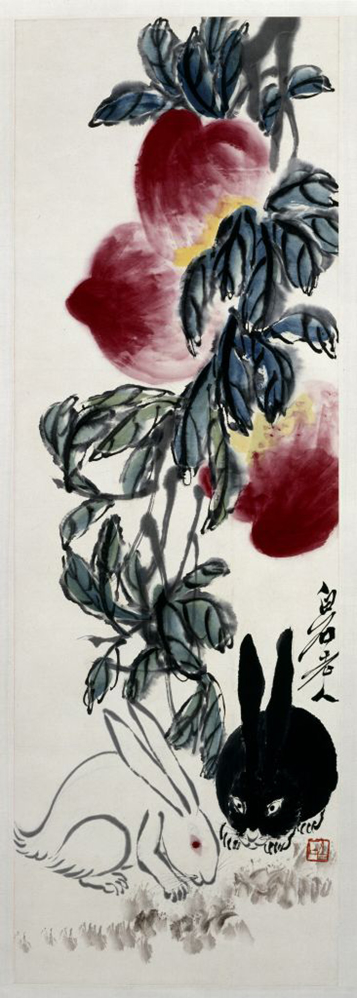齊白石 桃兔圖軸