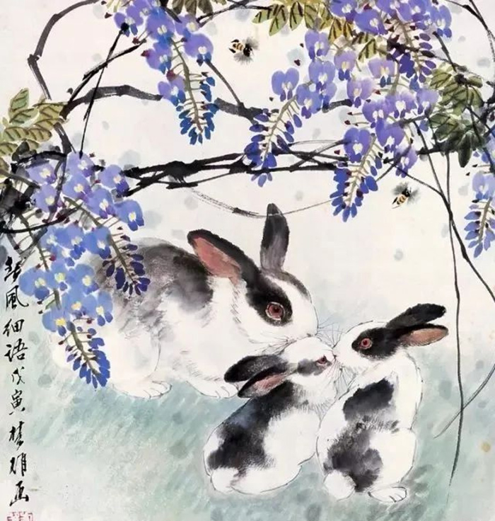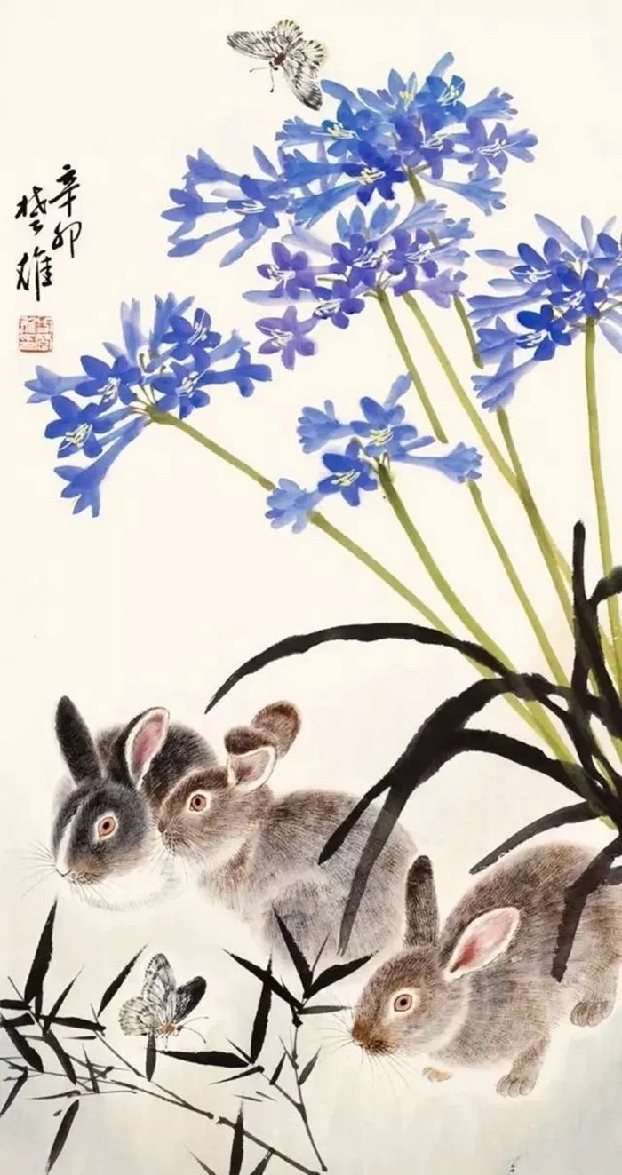 方楚雄筆下的兔子姿態各異,描繪了兔子的不同生活環境,可愛而不失靈動。畫家本人深受嶺南畫派的影響,同時偏好宋人花鳥畫。他的花鳥畫既不失傳統的法度,又充滿濃郁的生活氣息。