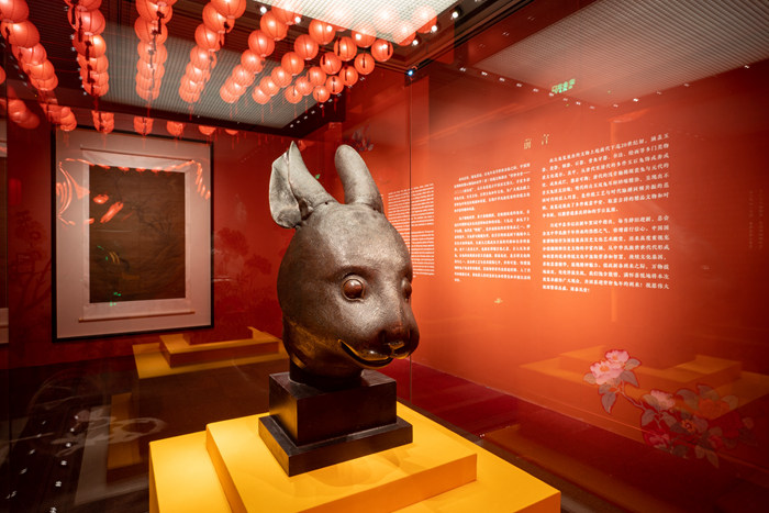 兔首銅像 清乾隆十二年至二十四年(公元1747—1759年)銅質 中國國家博物館 “癸卯金安——二〇二三新春展”展覽現場 (攝影:陳拓)