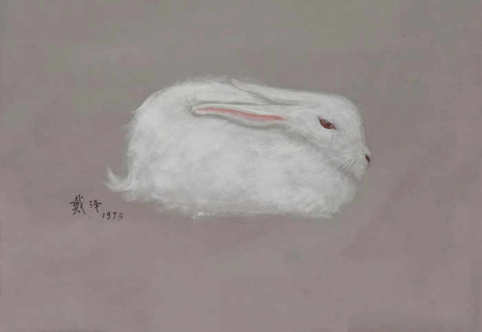 這幅作品創作于1973年。兔子的形體被概括為幾何形狀,宛如一個團塊,簡約卻不失質感,戴澤先生的風趣躍然紙上,作品及其耐人尋味。