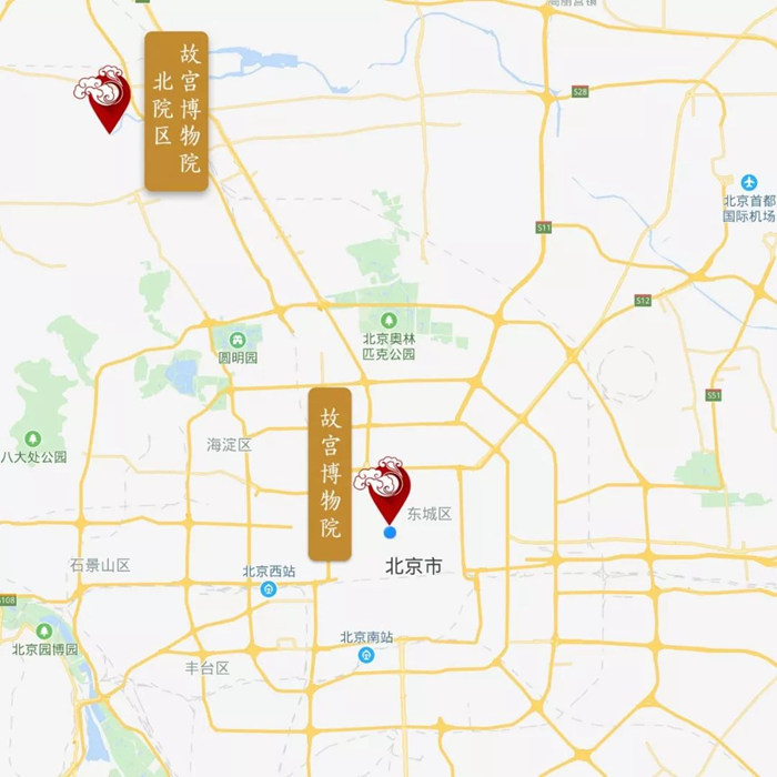 故宮博物院及北院區位置示意圖 圖源:北京市規劃和國土資源管理委員會