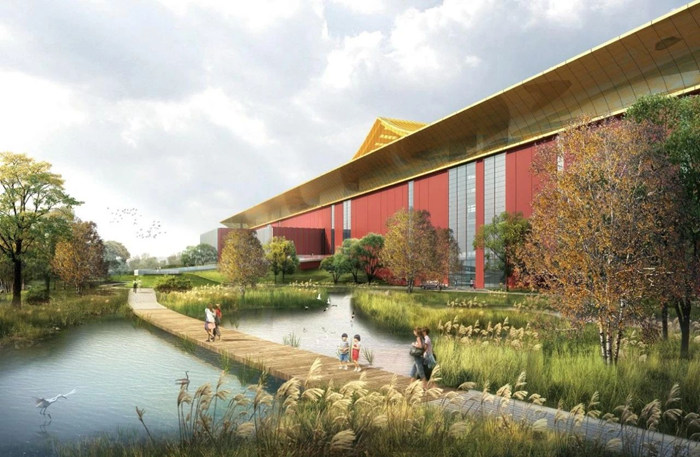 浩浩湯湯、橫無際涯的蘆葦蕩,花團錦簇的洛陽牡丹,藍天中平鋪著流云的皓影,在建筑效果圖中,故宮博物院北院區周邊呈現出一片活意盎然,與自然和諧共生的生態氛圍。故宮博物院前院長單霽翔指出,北院區建筑設計,既注重科學性,又具有前瞻性,適應當今時代的特點和要求。以體現民族傳統、地方特色、時代精神、故宮元素為指導思想,拒絕“奇奇怪怪”的建筑形式,維護與保持故宮博物院在世界博物館界的地位和形象。同時,鼓勵對“中而新”的建筑形式進行探索和實踐,追求傳統文化與現代文化氣與韻、形與意、神與魂的有機結合,延續故宮博物院的文化血脈,具有獨特的文化氣質,成為人們尊重并喜愛的“精神的家園”“文化的綠洲”和“城市的客廳”。