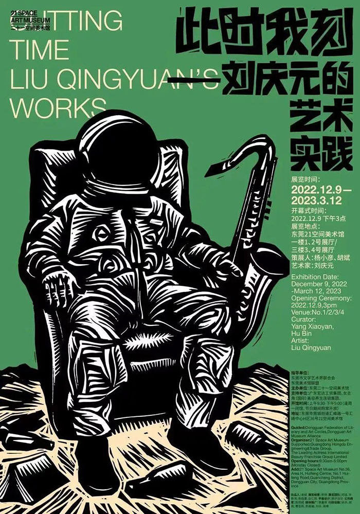 在疫情最為艱難的2022年,劉慶元刻意讓自己的工作節奏更緊湊,努力把失去的時間搶回來,先后在書籍出版和展覽方面推出新作,劉慶元和鄉建學者左靖共同編著的《鄉村與木刻》榮獲2022年度“最美的書”稱號。目前正在廣東東莞二十一空間美術館展出《此時我刻——劉慶元的藝術實踐》回顧了藝術家2000年以來的劇場裝置、影像和攝影、視覺設計、現成品、木刻原作等作品,這是一次近距離集中感受劉慶元作品的機會。