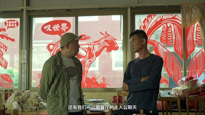 劉慶元與餐廳老板交流 (圖片來源:廣東南海大地藝術節2022視頻截圖)