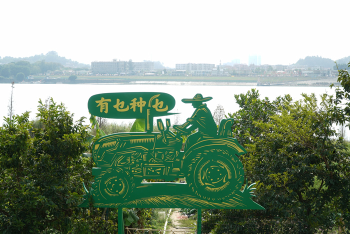 記者最早接觸到劉慶元的作品還是在鄉建學者左靖的展覽中,左靖的鄉村建設展覽必然會請到劉慶元來做木刻作品,包括鄉村文化機構的名牌導引,參觀者只要望向那古雅拙樸小小的名牌,便感受到濃郁的鄉村氣息。