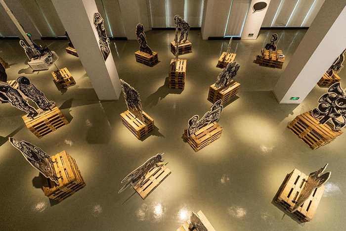 劉慶元:我個人沒有過多考慮行業發展需求,例如個展和群展、大型和小型于我只是一份工作。這個展覽源于兩個策展人是我的學者朋友,他們提出想在一個地方美術館做我的展覽。我下意識覺得越是在難熬的2022年越是要做點事情,我也接受任何語境下的去中心化體驗,而木刻本就是“被動”的藝術,所以我就答應做這樣一個展覽。這個美術館以前主要是展覽繪畫為主,現在也想嘗試做當代藝術有關的展覽。