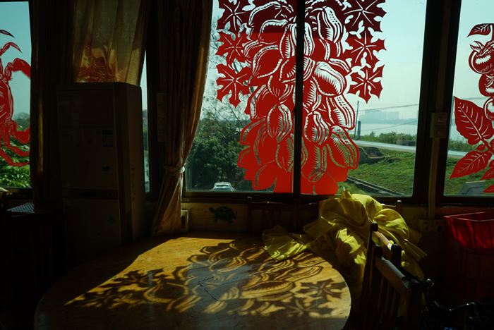 劉慶元:你沒發現我從來都是喜歡去中心化嗎?我之前就和藝術節溝通過幾不要(草坪、湖邊、廢墟和風景區)。選擇邊界地帶,就想自己嘗試和一個正在經營中的業態合作,例如大排檔、農莊、五金店和小賣部都行,之前我也沒試過這樣的工作方式。經驗豐富的大地藝術節主辦方秒懂,也為此很高效的做了很具體細致的前期調研、溝通工作。后來我選了這個小島,是有一次在島上下雨路過時經過這家其貌不揚的小餐廳,它夾在祠堂和豪宅中間,前面有一座連接路面的鐵橋,后面是尚未完工的紅磚住宅,小小的餐廳有一個很有空間感的名字,叫海邊餐廳,全家四口自己經營沒有雇人,除了飯點在餐廳工作平時就各自在地里務農,平時吃飯的人也不多基本上是本地鄰居熟客,我說可以,就叫“海邊的餐廳”(當地人把江河湖泊都成為“?!保?。