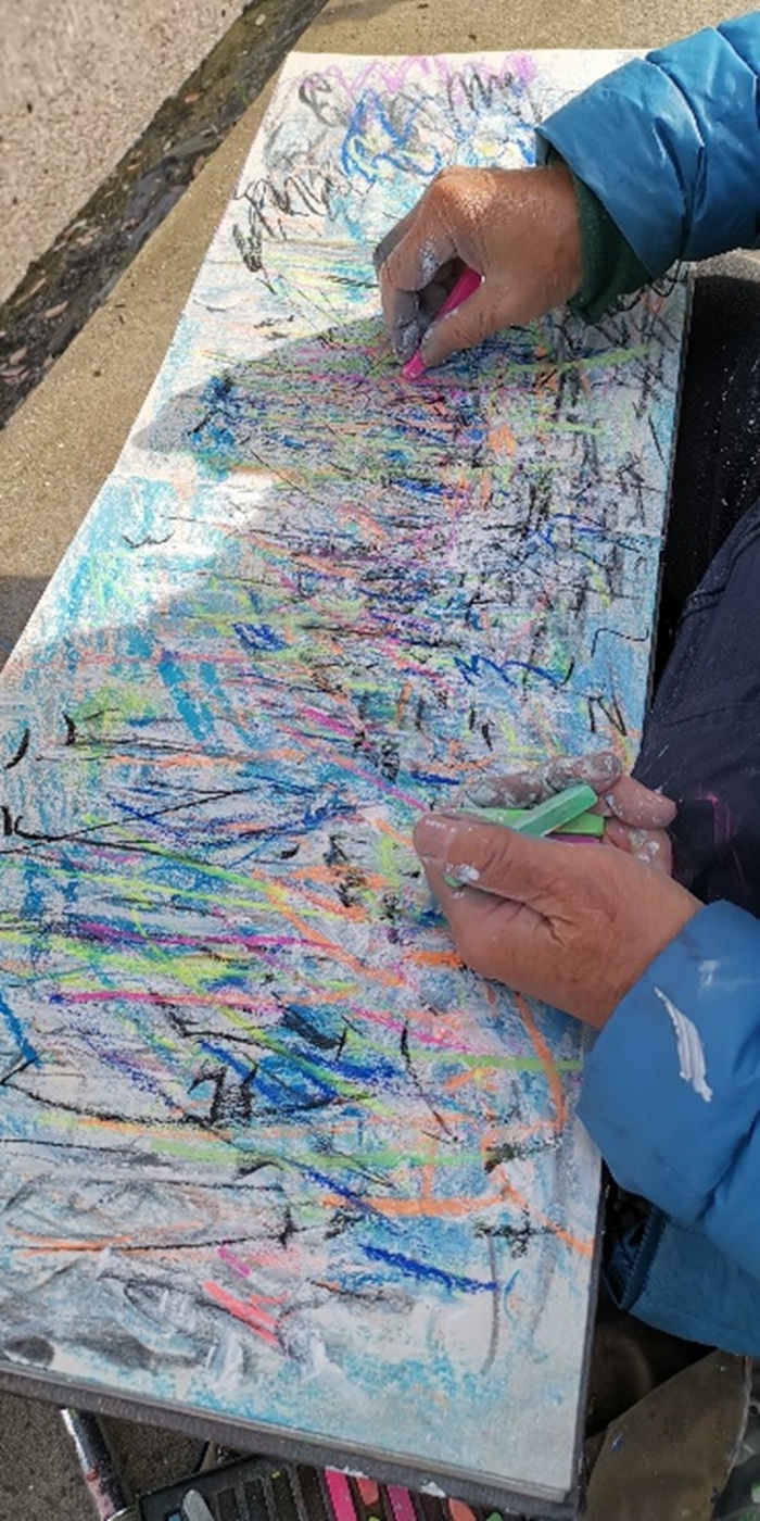 盡管李玉雙先生不畫水墨畫,主要是面對自然風景的寫生,以油畫棒和炭筆在紙上作畫,不同于傳統水墨同時也不同于西方油畫,但對于線條的要求同樣嚴格,也是一筆一筆的畫,無數線條的細節,在光線的顫動中,體現出豐富而美妙的差異,而且幾乎總是滿幅的作品,線條與光線之間的變化關系得到了絕對表現,既要面對風景而傳達細節變化,又要在繁密的線條中賦予節奏的韻律,李玉雙的風景基本上是豎行的線條,因為這是面對樹木花草的形態與生長性。