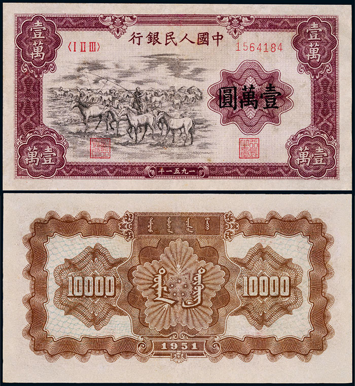 1951年第一版人民幣壹萬圓牧馬一枚