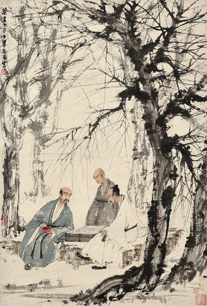 傅抱石,對弈圖,設色紙本,1943年作,87.7×59.9cm