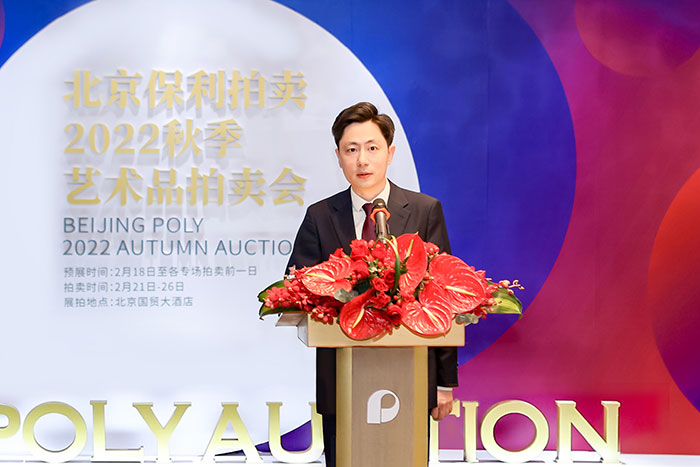 上午九時,北京保利拍賣 2022 秋拍開幕式在北京國貿大酒店三層舉辦,保利文化集團黨委書記、董事長王波,黨委副書記、總經理郭文鵬攜保利文化經理班子成員出席,活動由保利文化集團藝術總監周濤主持。
