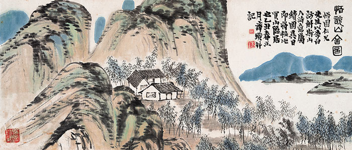 齊白石,1864-1957,為悟園畫“悟說山舍圖”,設色紙本,1925年作,29×68cm