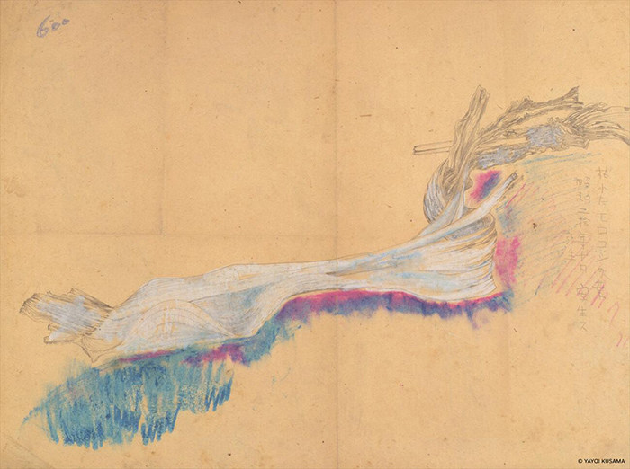 《玉米的枯葉》1945年 巖彩紙本 38 × 50厘米 藝術家自藏 ?草間彌生