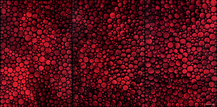 《星塵的積累》 2001 年 塑膠彩布本,共三屏 194 × 390 厘米 松本市美術館藏 ?草間彌生
