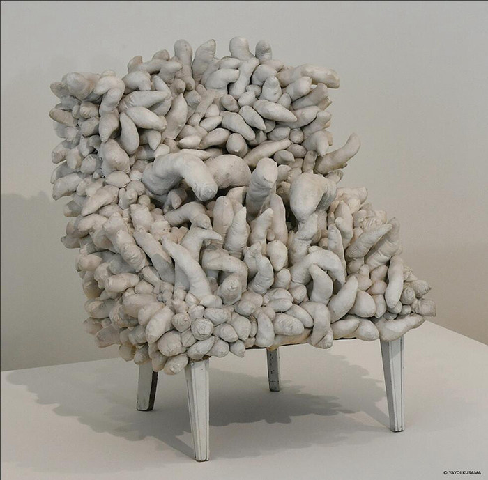 《無題(椅子)》1963年縫制填充織物、木、顏料81 × 93 × 92厘米藝術家自藏 ?草間彌生圖片由草間彌生紀念藝術財團提供