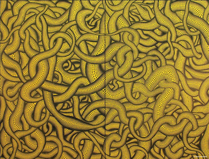 《性愛執念》1992年 塑膠彩布本,共兩屏 194 × 260厘米 Lito and Kim Camacho Collection ?草間彌生