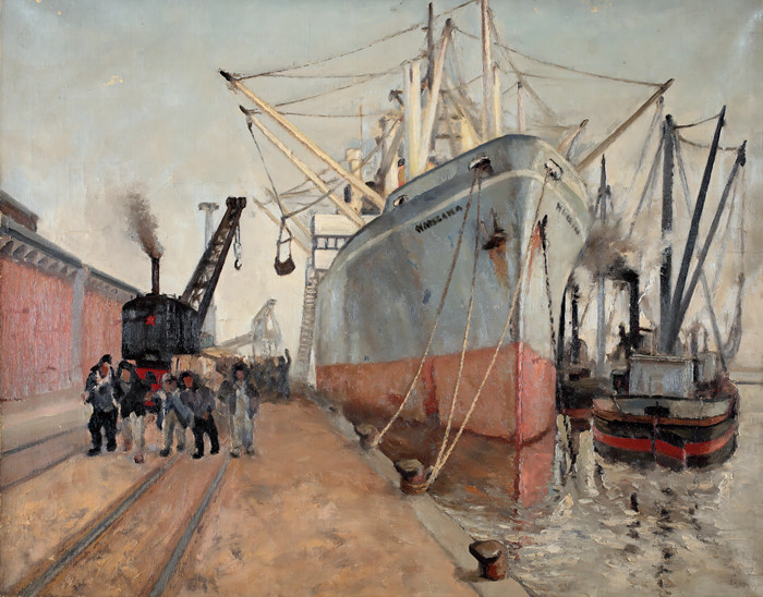 塘沽新港,孫宗慰,布面油畫,55×70cm,1954年,家屬提供