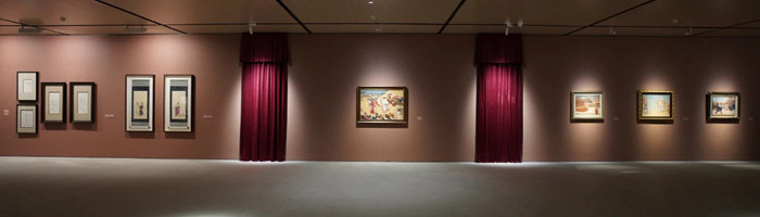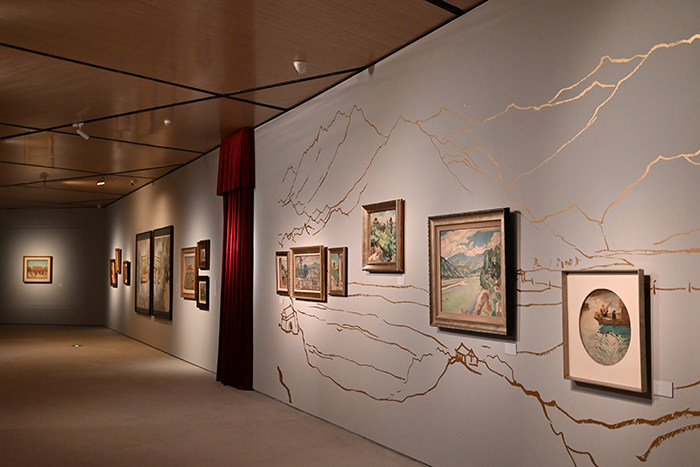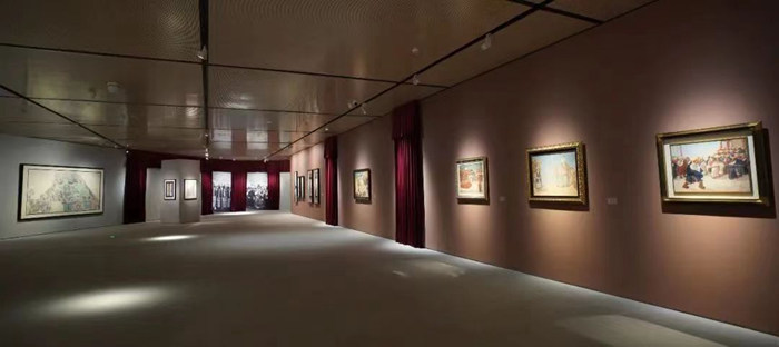 曹慶暉:策展是一個立體的事情,我不是一塊一塊單獨想的。本身我在美術史系教書,作為策展工作的話,我越來越覺得進入到美術館有兩個變化,一個是從語言文字進入到實際物料,在美術館必須是通過物料來反映的,沒有展示的東西不行;還有一個就是從語言層面轉向空間敘事。其實我們離孫先生這一代人不遠也不近,我們需要一些代入感,這種代入需要一些手段和橋梁。因為他去過西北,我這次用的音樂是西北民歌花兒的《上去高山望平川》,布幔是從他的畫面當中的人物服飾、色調關系到西北的意象、塔爾寺的意象等綜合出來的一個結構。