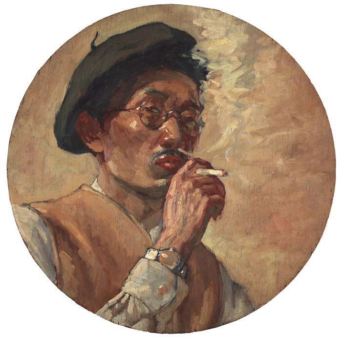 自畫像,孫宗慰,木板油畫,直徑45cm,1940年代,中央美術學院美術館藏