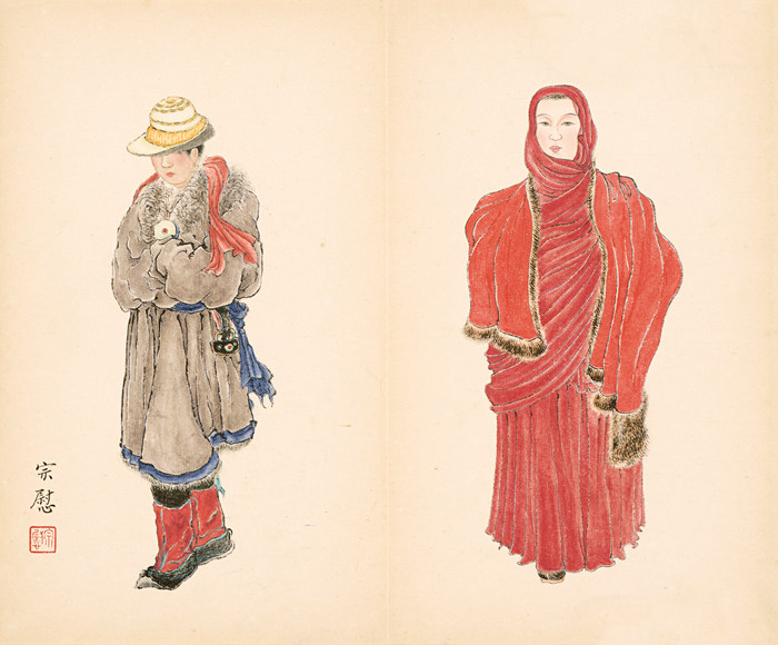 西域少數民族服飾冊(局部),孫宗慰,紙本彩墨,15×25cm×9,1940年代,家屬提供