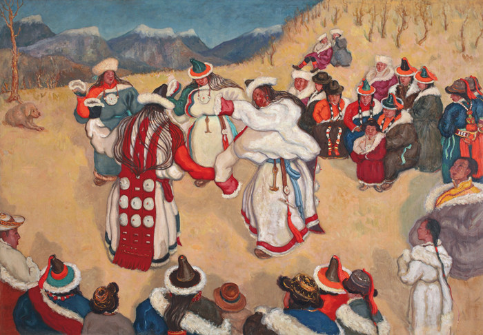 蒙藏女子歌舞,孫宗慰,布面油畫,90×120cm,1943年,中央美術學院美術館藏